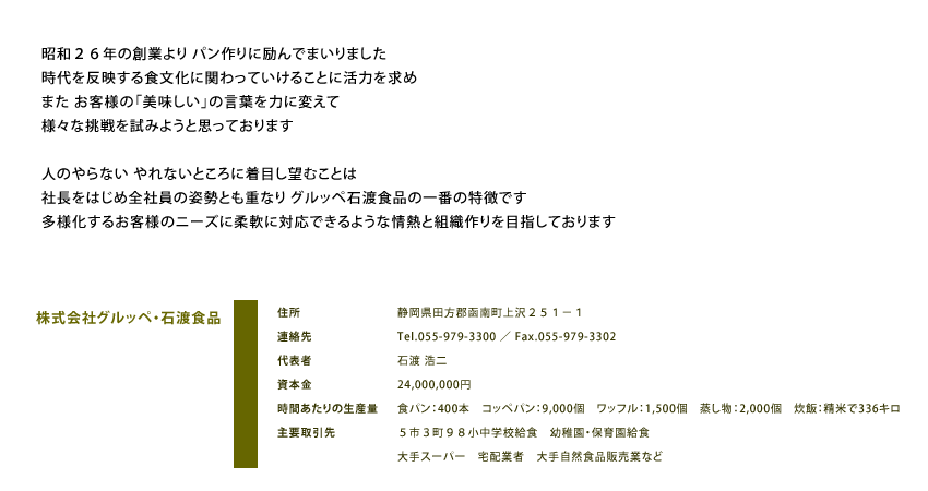 グルッペ・石渡食品 ~パン製造・開発・販売、学校給食など 静岡県 函南~